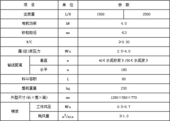 噴錨支護能有效調用巖土體自身的強度和自穩能力,是提高巖土穩定性和解決復雜巖土工程穩定問題的經濟有效的方法之一,噴錨支護離不開灌漿技術,設計和施工對錨固灌注漿的要求越來越高,各種施工《規范》對灌注漿壓力和水泥砂漿的水灰比也做了嚴格的規定,一般的灌注漿設備難以滿足。