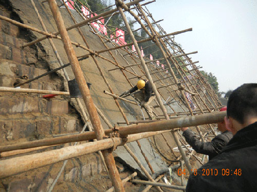 宜瀘渝高速公路南溪長江大橋建設是宜瀘渝高速公路宜賓段的控制性工程,2008年11月開工建設,預計2012年年底建成通車,投資為6.5億元,橋梁總長度1295.89米,主橋為820米,寬24.5米,橋梁形式為雙塔門式拉索橋,雙向四車道,設計時速為80公里,其北橋頭位于長江北岸南溪縣羅龍鎮金雞村王家嘴,南橋頭位于長江南岸南溪縣江南鎮和馬家鄉交界處的灌口。圖為GS20EC灌漿泵在錨碇基坑灌漿施工中。